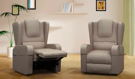 Sillón orejero con cuatro opciones: fijo, con relax manual, con relax motorizado y mando a distancia y opción para elevación de personas mayores.